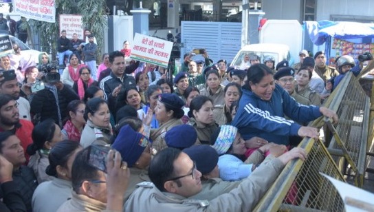 प्रदेश महिला कांग्रेस अध्यक्ष ज्योति रौतेला के नेतृत्व में कार्यकर्ताओं ने यमुना कॉलोनी स्थित कैबिनेट मंत्री के आवास का घेराव करने के लिए कूच किया।प्रदेश महिला कांग्रेस ने अंकिता भंडारी हत्या मामले में वीआईपी के खिलाफ कार्रवाई व कैबिनेट मंत्री रेखा आर्य के पति गिरिधारी लाल साहू की ओर से महिलाओं पर दिए बयान के विरोध में प्रदर्शन कर कैबिनेट मंत्री के आवास कूच किया। पुलिस ने बैरिकेडिंग लगाकर महिला कांग्रेस कार्यकर्ताओं को रोक दिया।प्रदेश महिला कांग्रेस अध्यक्ष ज्योति रौतेला के नेतृत्व में कार्यकर्ताओं ने यमुना कॉलोनी स्थित कैबिनेट मंत्री के आवास का घेराव करने के लिए कूच किया। पुलिस ने यमुना कॉलोनी के मुख्य गेट से पहले बैरिकेडिंग लगा कर कार्यकर्ताओं को आवास तक जाने से रोक दिया। इसके बाद महिला कार्यकर्ता सड़क पर बैठ कर नारेबाजी करने लगीं। महिला कांग्रेस अध्यक्ष रौतेला ने कहा, अंकिता भंडारी हत्याकांड को तीन वर्ष हो चुके हैं, लेकिन अभी तक न्याय नहीं मिल पाया है।हत्या मामले में जिस वीआईपी का जिक्र हुआ, उसे बचाने का प्रयास किया जा रहा है। उन्होंने आरोप लगाए हैं कि पिछले वर्षों में राज्य में जितने भी महिला अपराध के मामले हुए हैं, उनमें भाजपा नेताओं के नाम सामने आए हैं।